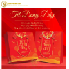 Tết là dịp đoàn viên, trao gửi yêu thương và gửi gắm những lời chúc tốt đẹp. Hộp quà Tết Đong Đầy mang sắc đỏ chủ đạo kết hợp vàng ánh kim rực rỡ, biểu trưng cho may mắn, phú quý và sung túc cả năm. Thiết kế tinh tế với họa tiết pháo hoa, lồng đèn và hoa văn cách điệu tạo nên vẻ đẹp hiện đại nhưng vẫn giữ trọn nét truyền thống Tết Việt.