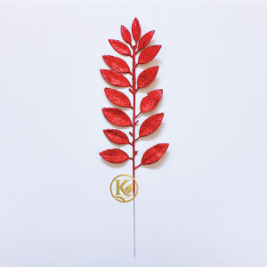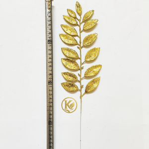 Cành lá được làm từ chất liệu nhựa bền nhẹ, bám kim tuyến chắc chắn, ít rơi, dễ dàng uốn cong và cắm vào nhiều vị trí khác nhau. Kích thước vừa phải, thuận tiện cho việc trang trí tháp bánh cưới, giỏ quà Tết, gói quà biếu, làm oản lễ hay trang trí không gian tiệc.