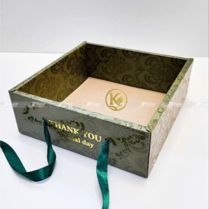 Hộp giấy nắp mica quai lụa đựng hoa quả