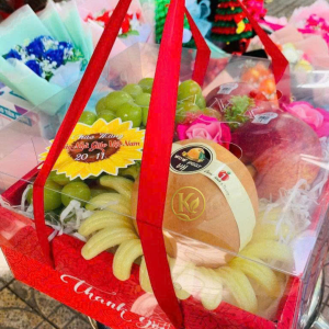 Hộp được làm từ giấy cứng cao cấp, bề mặt in sắc nét, chắc chắn, giúp bảo vệ hoa quả tươi ngon trong quá trình vận chuyển. Nắp mica trong suốt mang đến cảm giác hiện đại, cho phép nhìn thấy trọn vẹn màu sắc bắt mắt của hoa quả bên trong mà vẫn đảm bảo kín đáo, sạch sẽ.