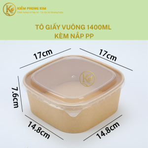 Tô giấy nâu | Bát giấy nâu 750ml nắp PP/PET dáng lùn