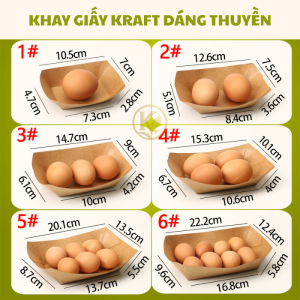 Khay giấy dáng thuyền được thiết kế độc đáo với form cong nhẹ hai bên, tạo cảm giác đẹp mắt và chắc chắn khi sử dụng. Chất liệu giấy kraft cao cấp, bền, chống thấm dầu mỡ tốt, giúp giữ trọn hương vị món ăn mà không lo rò rỉ.