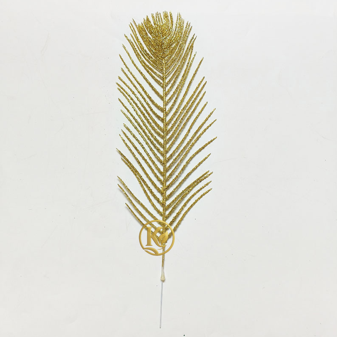 Lá lông vũ kim tuyến trang trí là phụ kiện decor sang trọng, thường được sử dụng để điểm xuyết cho tháp bánh cưới, giỏ quà, mâm lễ, làm oản, hay các sản phẩm handmade. Với thiết kế tinh tế dạng lá lông vũ mềm mại, phủ lớp kim tuyến óng ánh, sản phẩm tạo hiệu ứng lấp lánh nổi bật dưới ánh sáng, giúp tổng thể trang trí thêm phần rực rỡ và cuốn hút.