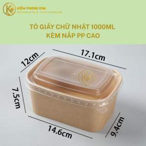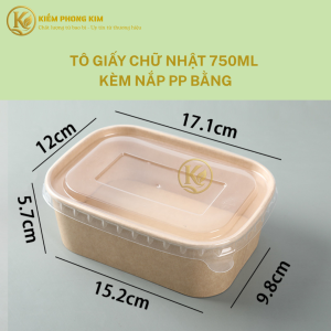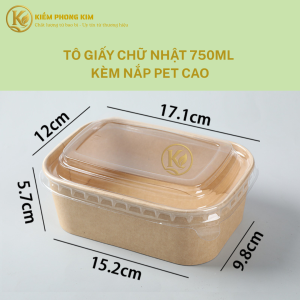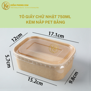 Tô giấy chữ nhật nâu | Bát giấy chữ nhật nâu 750ml nắp PP/PET