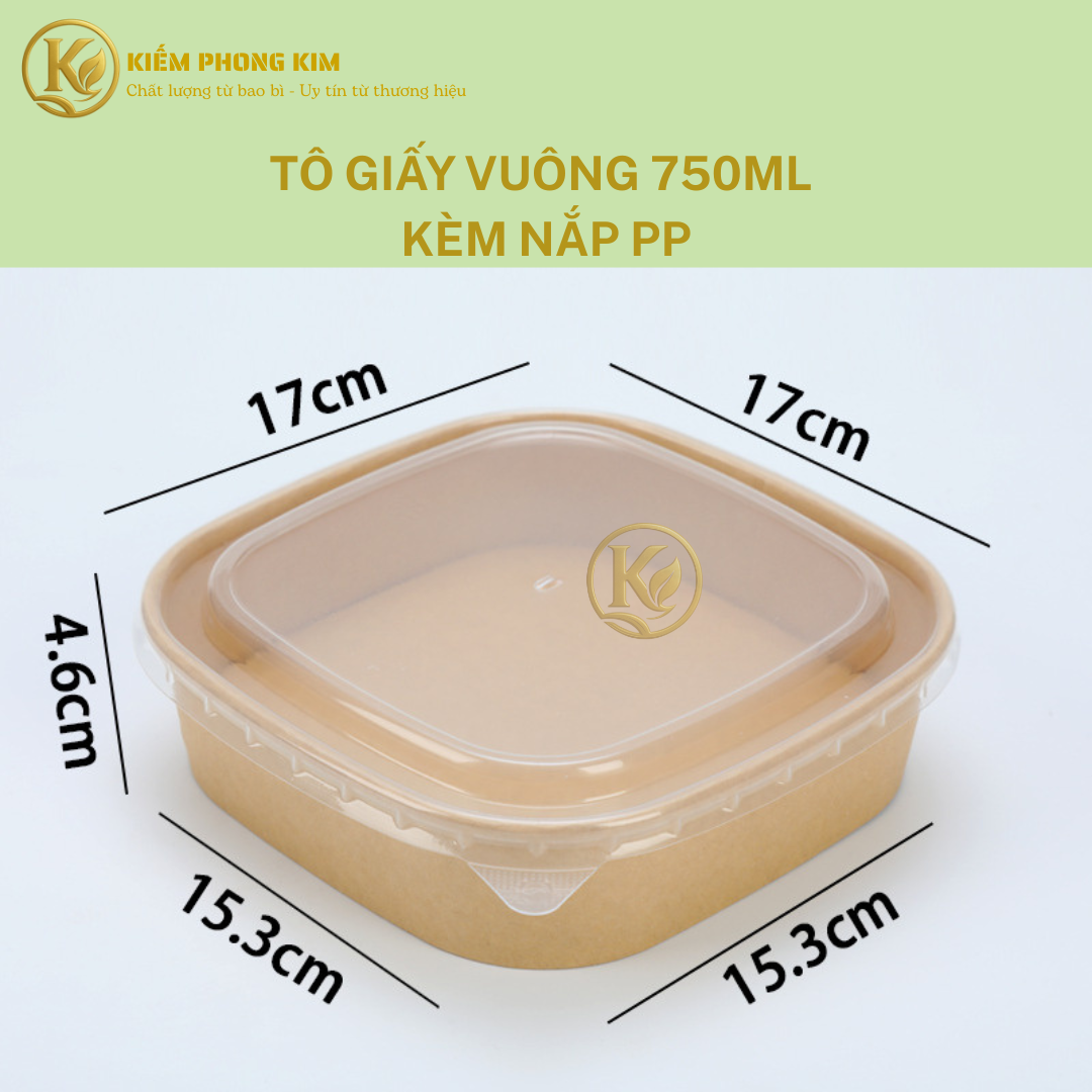 Tô giấy vuông được sản xuất từ giấy kraft tráng PE cao cấp, thân thiện với môi trường, đảm bảo an toàn cho sức khỏe người dùng. Thiết kế dáng vuông hiện đại, chắc chắn, giúp chứa đựng đa dạng món ăn như cơm, bún, phở, salad, đồ khô hoặc thức ăn có nước sốt.